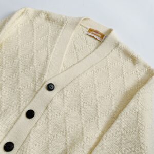 ナチュラルな色合いのダイヤ柄ニットカーディガン