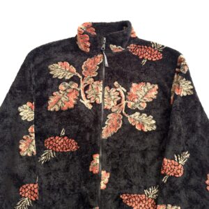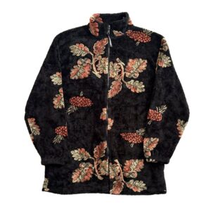 Oak & Acorn Pattern Zip Up Boa Jacket