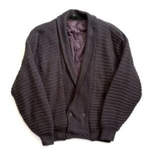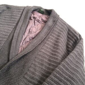 ショールカラーとダブルボタンのデザインが