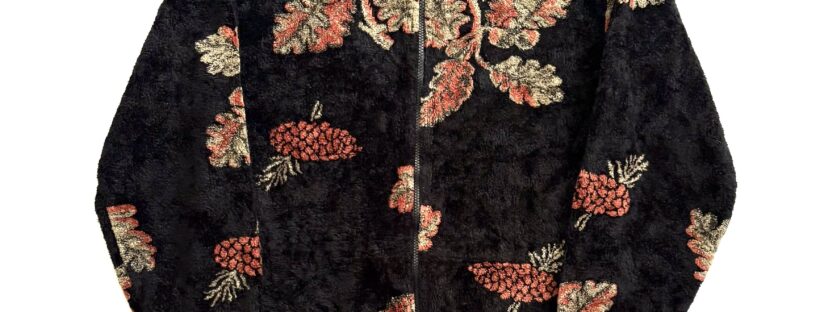Oak & Acorn Pattern Zip Up Boa Jacket