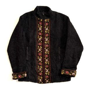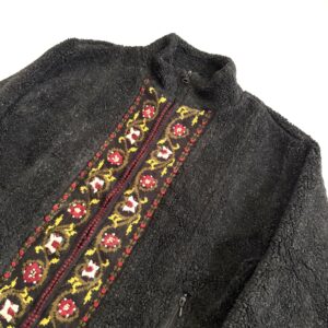 Flower Embroidery Boa × Silk Reversible Zip Up Jacket