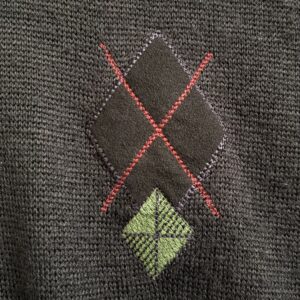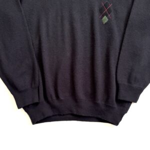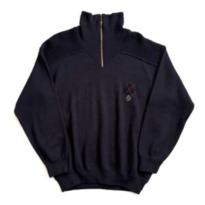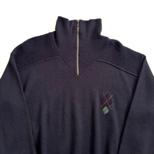 Suede & Embroidery Argyle Half Zip Knit Pullover